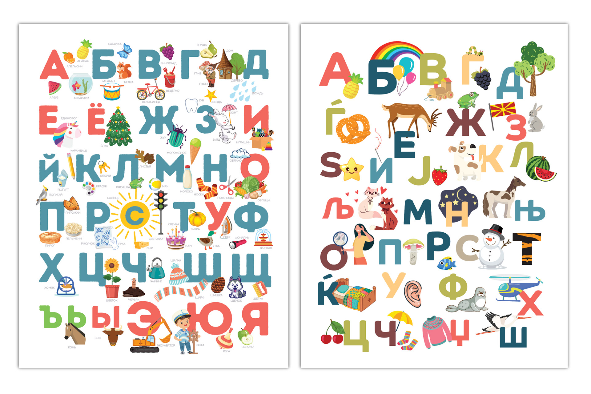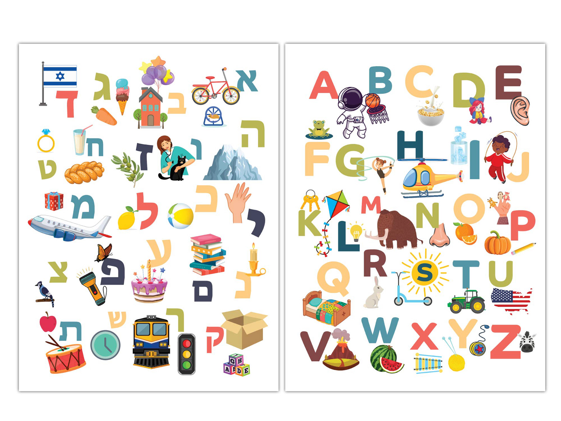 Custom multilingual alphabet posters combining clear layout, playful typography, and print-ready precision for educational use.